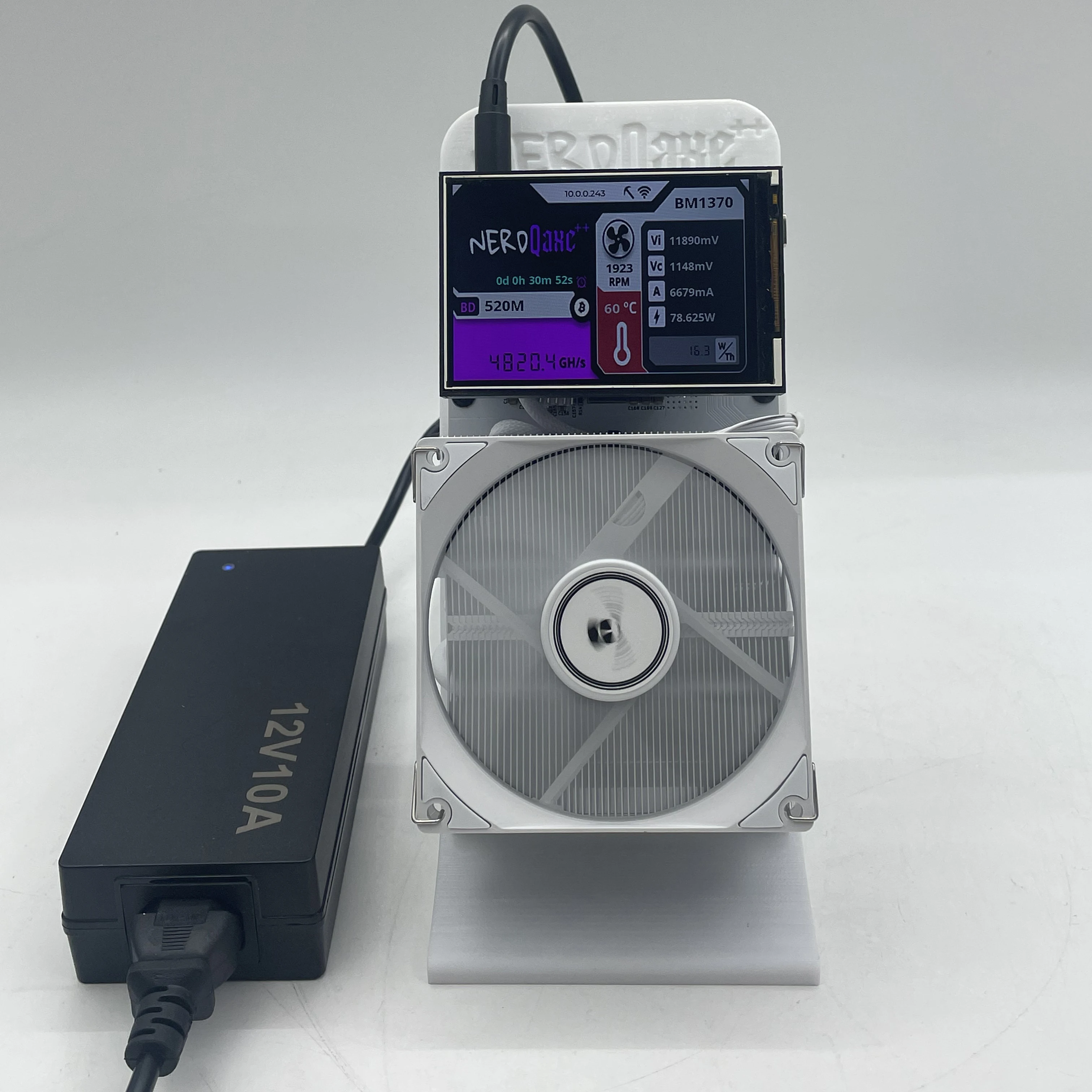 Exceptional Hashing Power – Equipped with four BM1370 ASIC chips, the NerdQAxe++ delivers an impressive 4.8 TH/s, making it one of the most powerful open-source Bitcoin miners in its class.