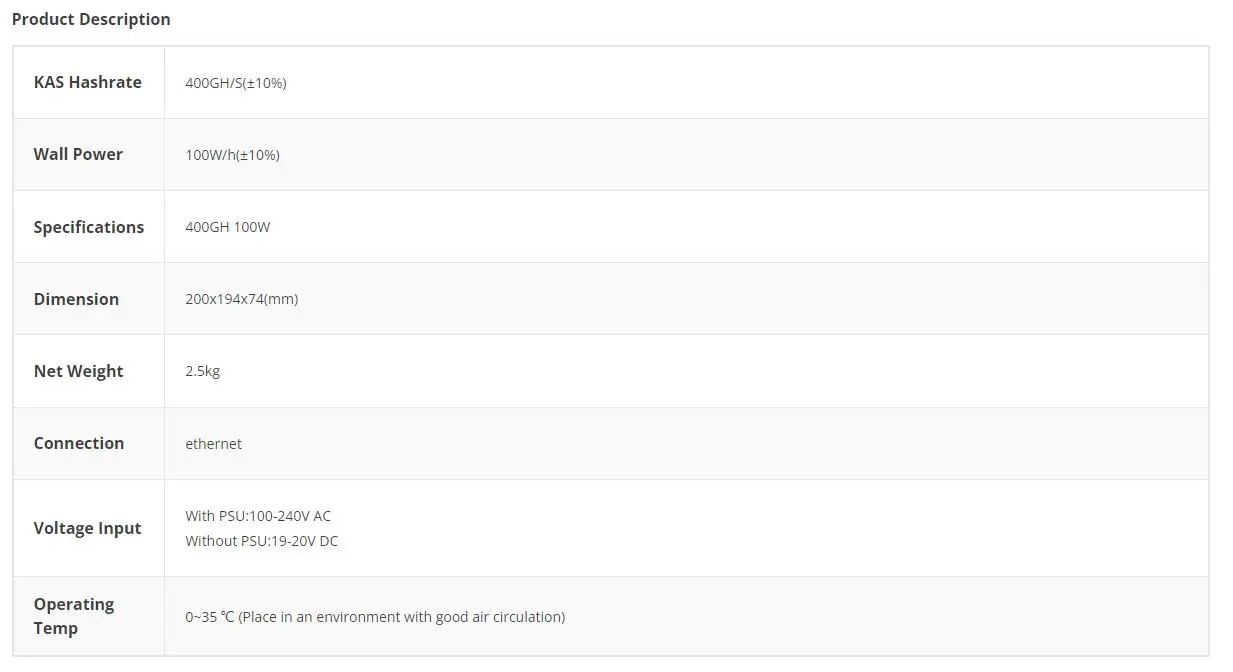 IceRiver KS0 ULTRA 400Gh/S 100W Kaspa Mining KAS ASIC MINER with PSU KAS Mining More economical than KS1 KS2 KS3m KS3 KS3l