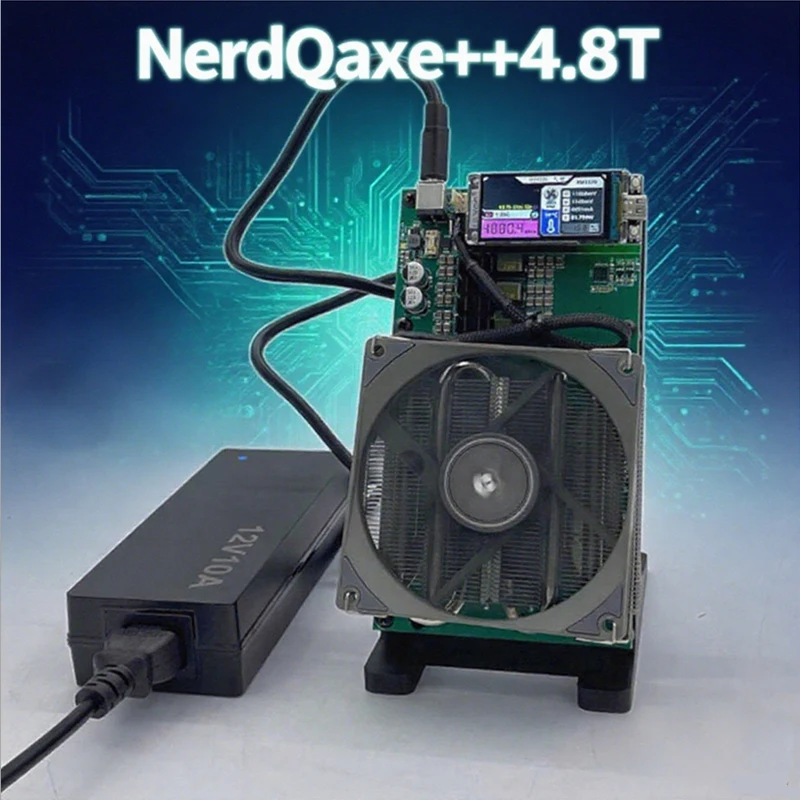 The NerdQaxe++ ASIC Miner is a powerful addition to any home Bitcoin mining setup, delivering an impressive hashrate of 4.8TH/S. This robust miner is specifically designed to run the Bitcoin algorithm, ensuring a high return on investment for cryptocurrency enthusiasts. The inclusion of a PSU means that you can start mining right out of the box, making it an ideal choice for beginners and professionals alike.